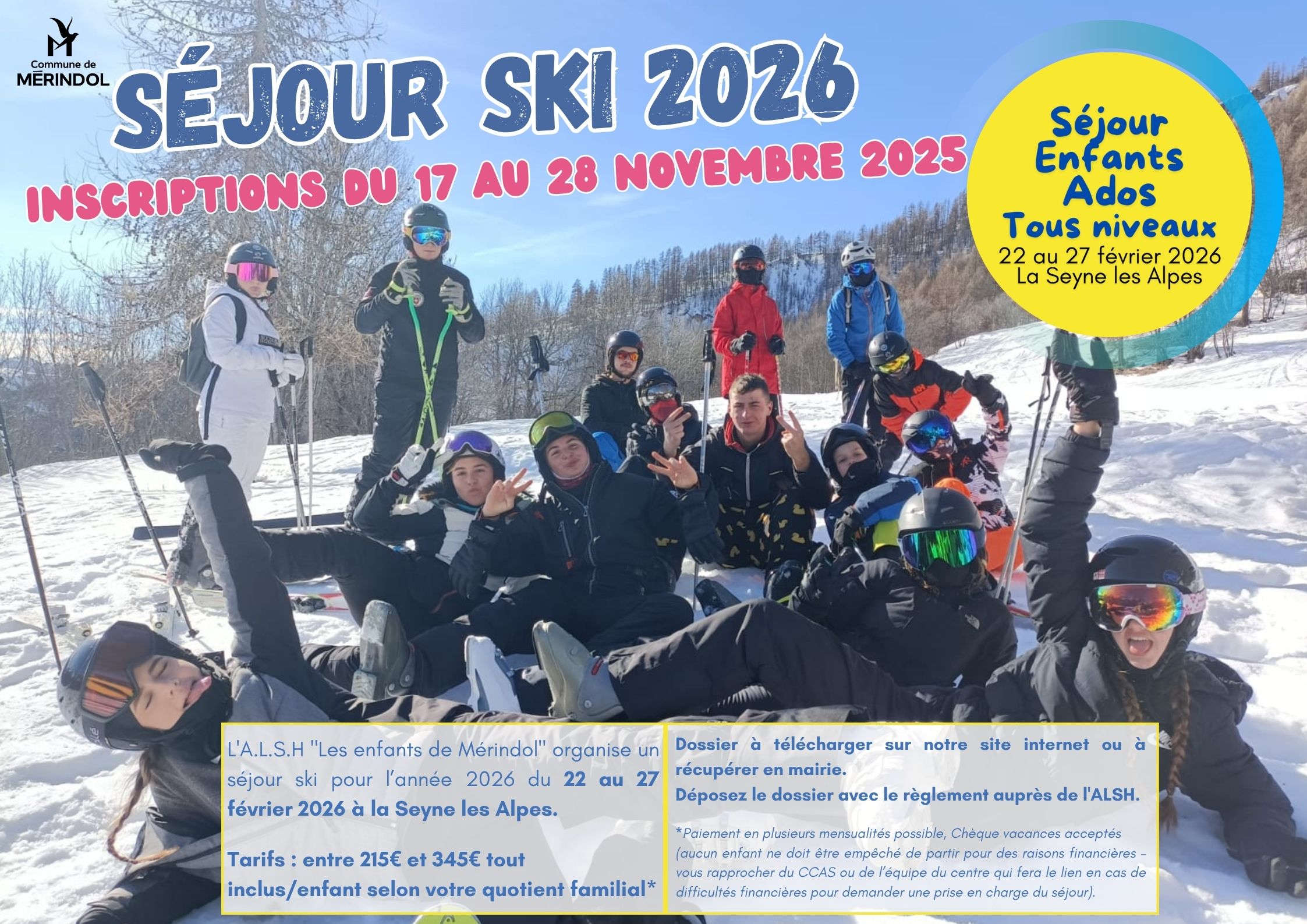 L'A.L.S.H "Les enfants de Mérindol" organise un séjour ski pour l'hiver 2026 à la Seyne les Alpes :