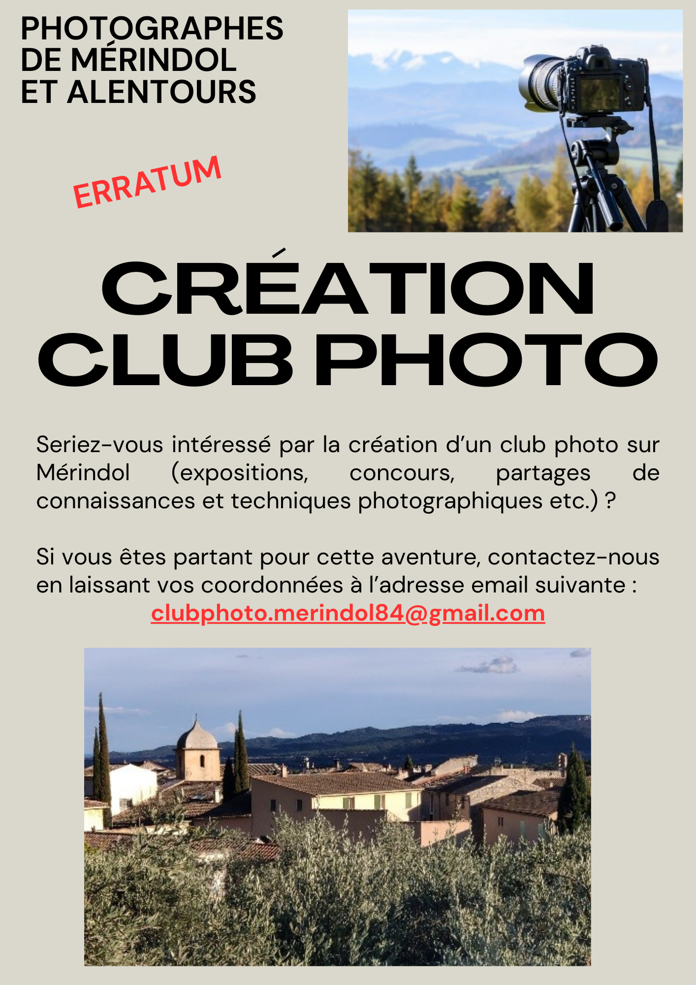 CRÉATION D'UN CLUB PHOTO À MÉRINDOL
