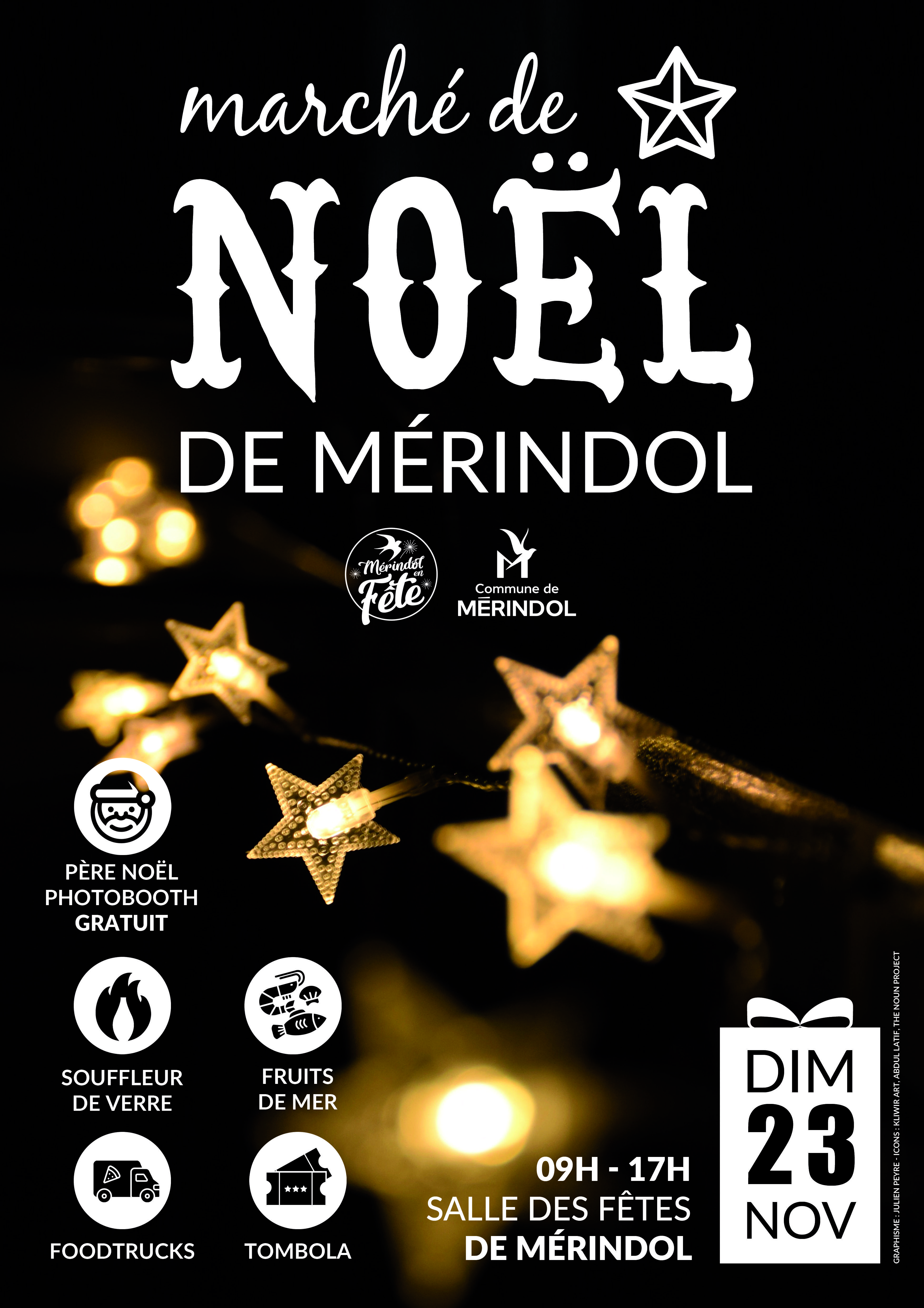 Mérindol en Fête vous invite à son traditionnel Marché de Noël le dimanche 23 novembre de 9h à 17h à la Salle des Fêtes.