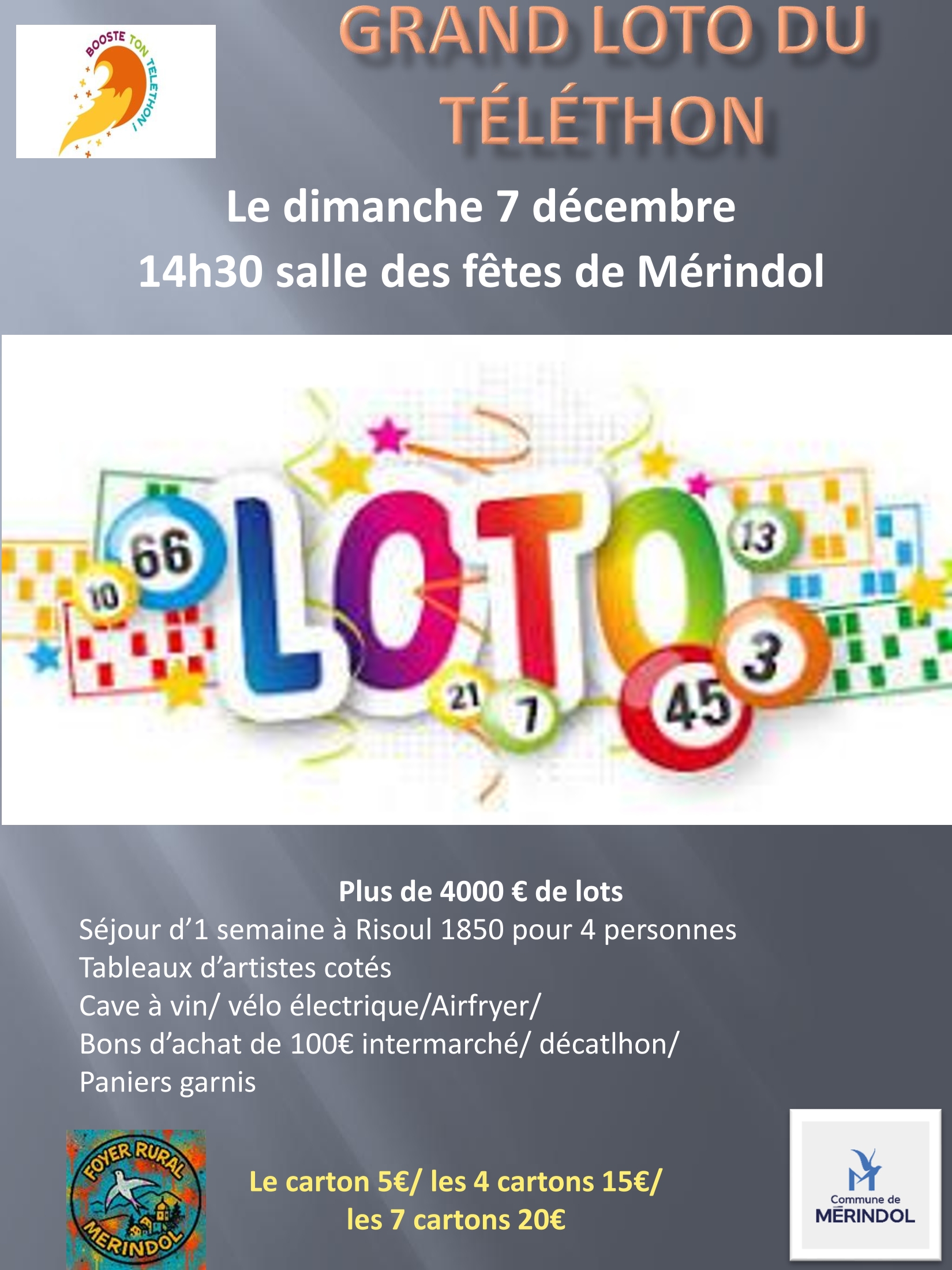 14h30 : GRAND LOTO DU TÉLÉTHON à la salle des fêtes